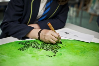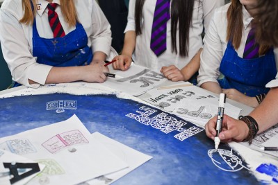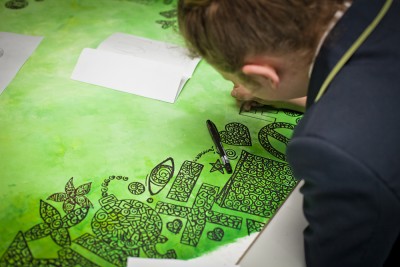 Using ink pens, water and tissue paper the pupils set to creating illustrations based around the theme ‘Out Of This World’.